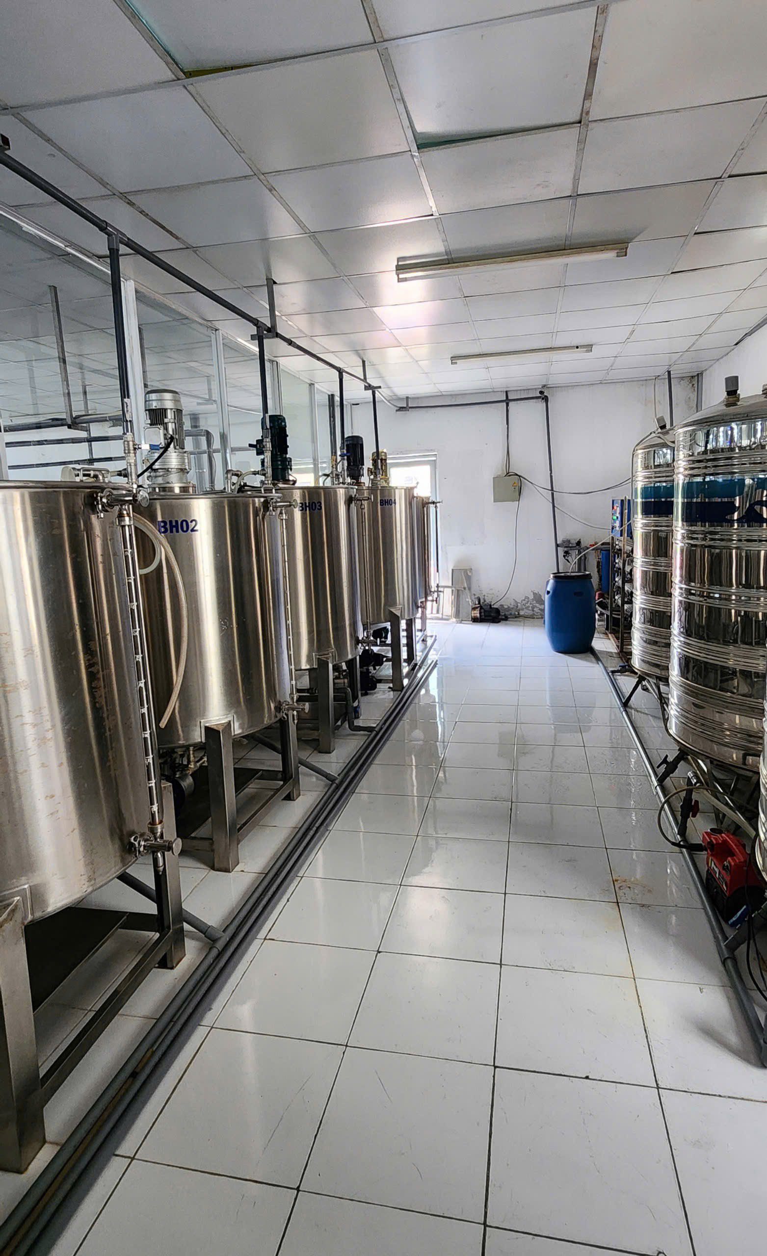 Gleaming stainless steel vessels masterfully blend pure ingredients, creating the pristine, hygienic formulations that infuse our premium wipes.