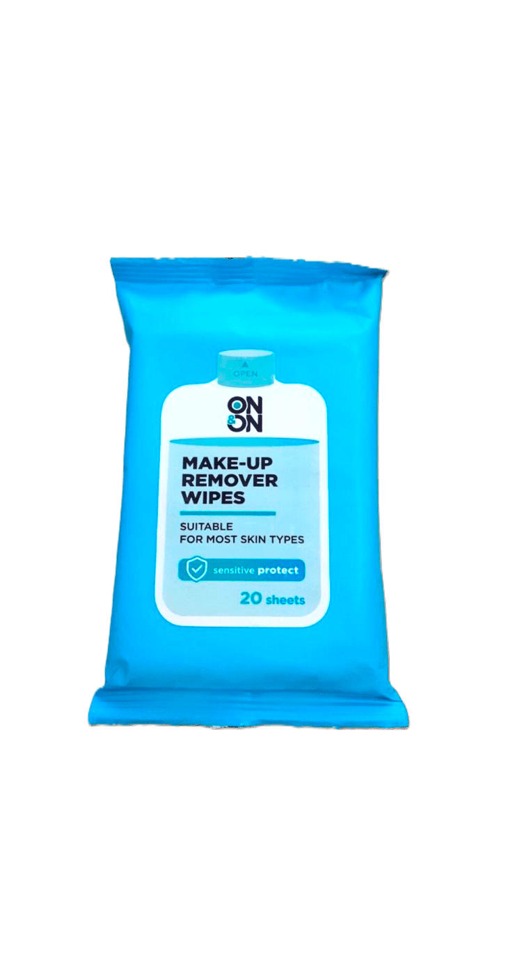 ON & ON Make-Up Remover Wipes are designed for effective and gentle removal of makeup and daily impurities. Suitable for most skin types, these wipes feature a sensitive protect formula to help cleanse without irritating the skin. The soft, moist texture makes them ideal for facial use at home or on the go. Packaged in a compact, resealable soft pack, they are convenient for travel and everyday skincare routines.