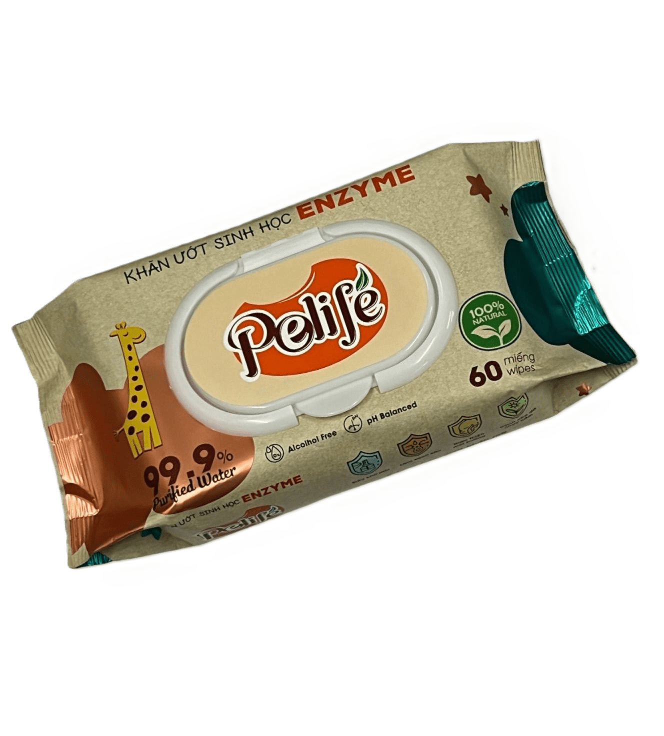 Pelife Enzyme Bio Wet Wipes are made with 99.9% purified water and biological enzyme technology for gentle and effective daily cleaning. The wipes are alcohol-free and pH balanced, helping protect sensitive skin while maintaining natural moisture. Designed for family and baby use, they are suitable for hands and skin. The resealable flip lid keeps wipes fresh and convenient for home use or travel.